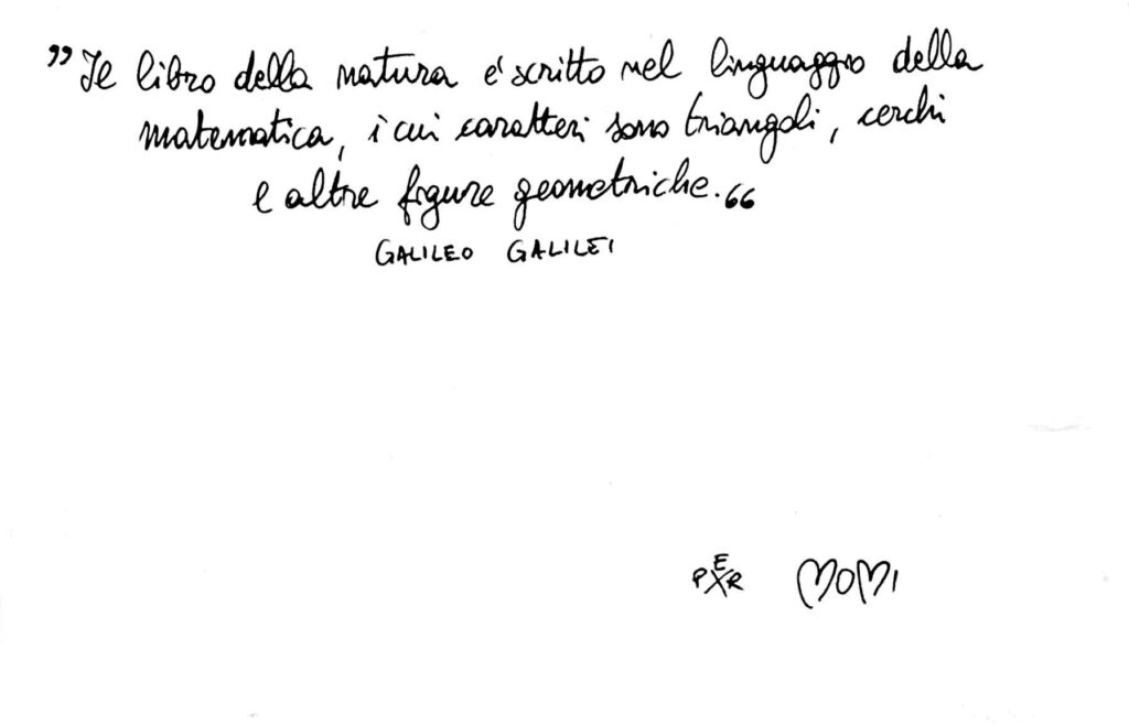 Il libro della natura è scritto nel linguaggio della matematica, i cui caratteri sono triangoli, cerchi e altre figure geometriche. — GALILEO GALILEI